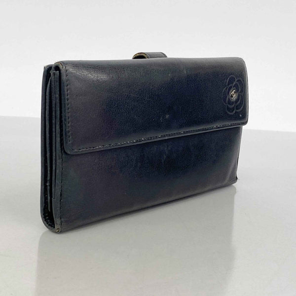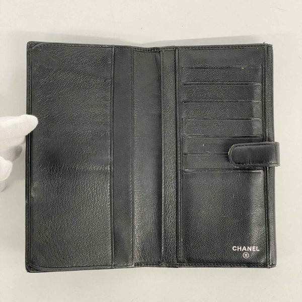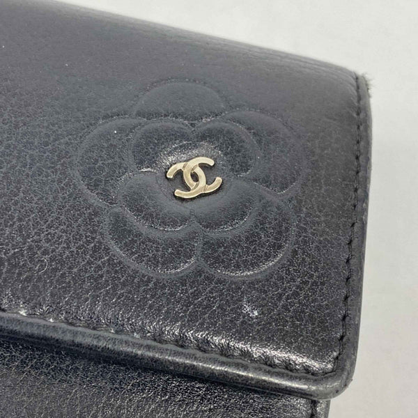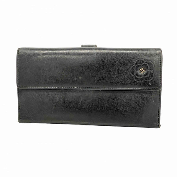 Chanel Camellia Lambskin Long Wallet Black Women\'s