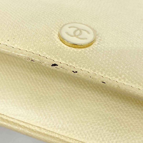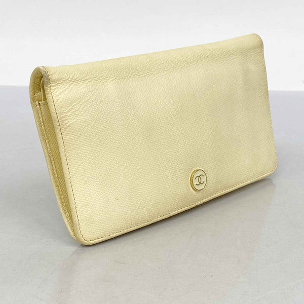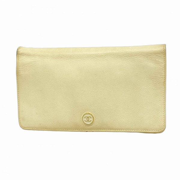 Chanel Coco Button Leather Long Wallet Yellow Women\'s
