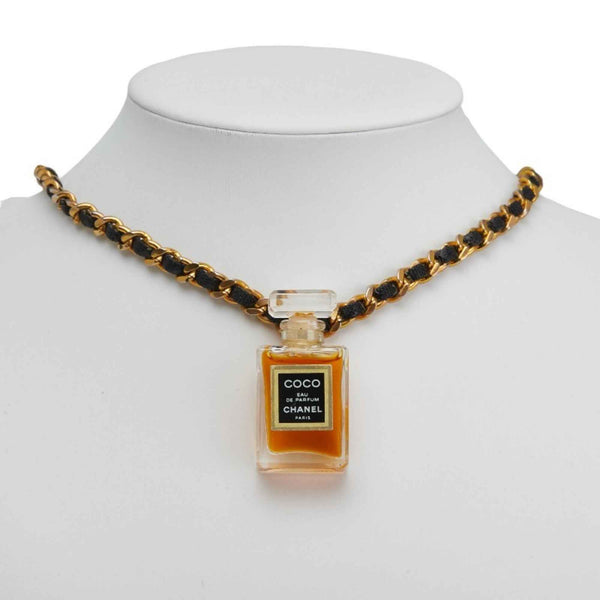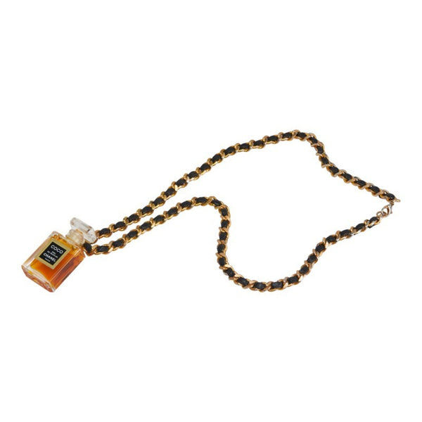 Chanel COCO EAU DE PAPFUM Eau de Parfum Perfume Necklace in Gold and Black Plated Leather for Women