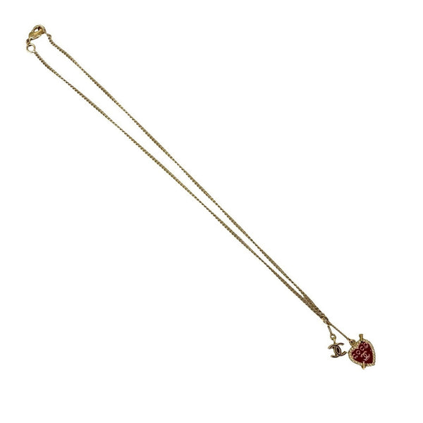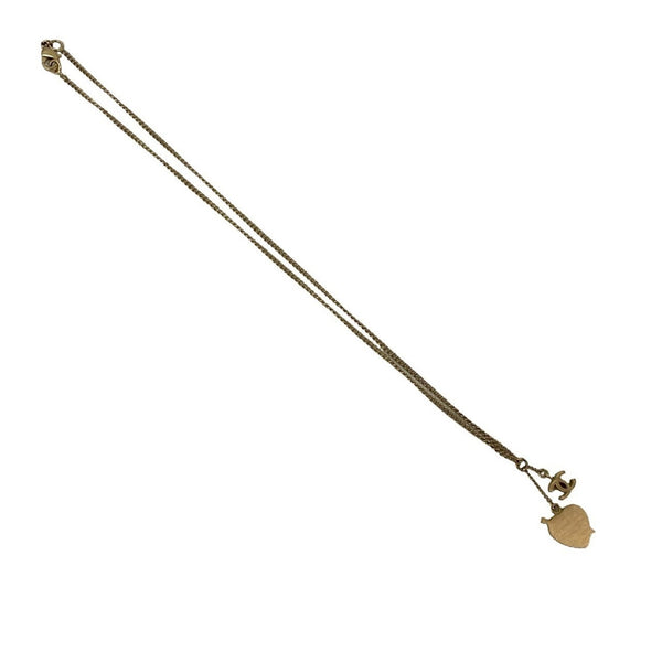 CHANEL Coco Mark Heart Motif Chain Necklace Pendant Gold 42706