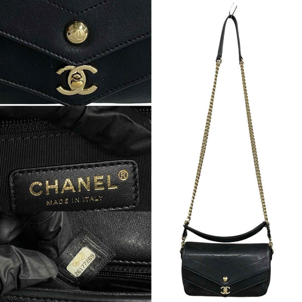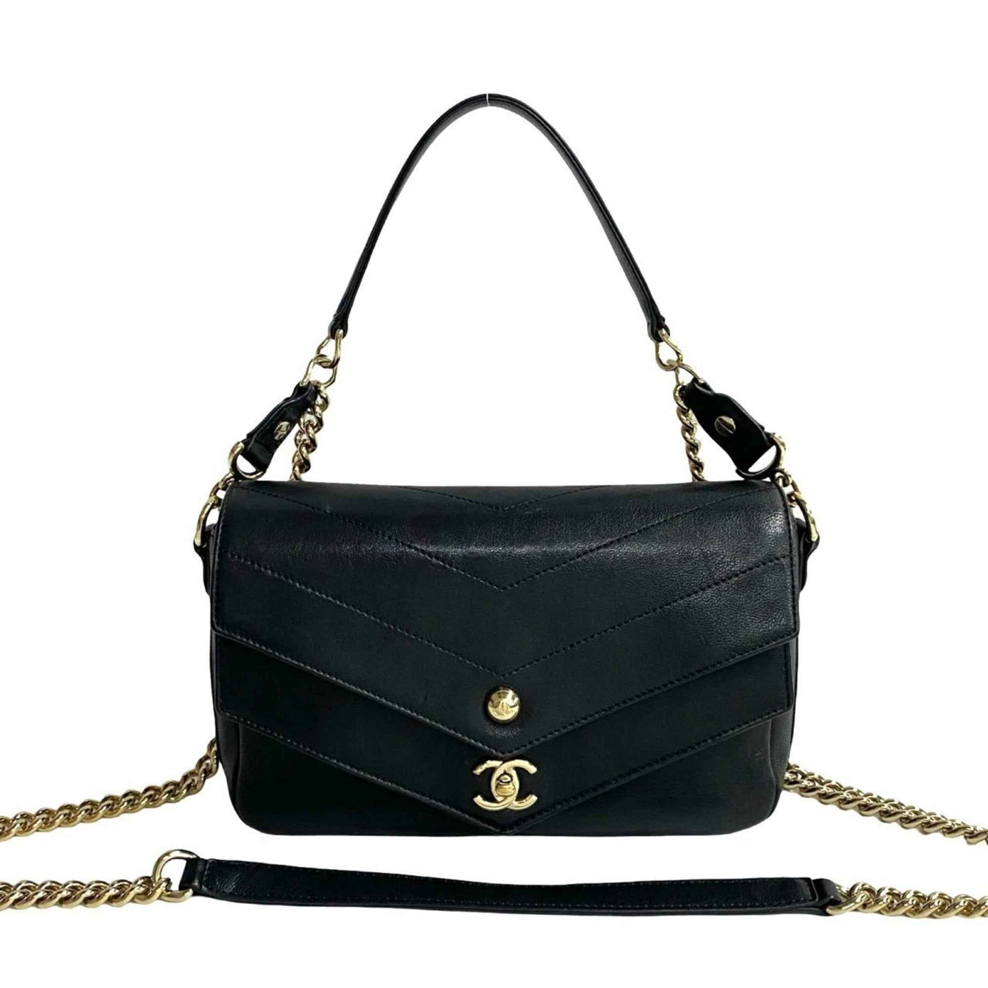 CHANEL Coco Mark V-Stitch Leather Chain 2-Way Handbag/Shoulder Bag, Black, 28583