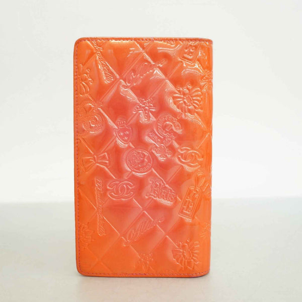Chanel Icon Patent Leather Long Wallet, Orange, Women\'s