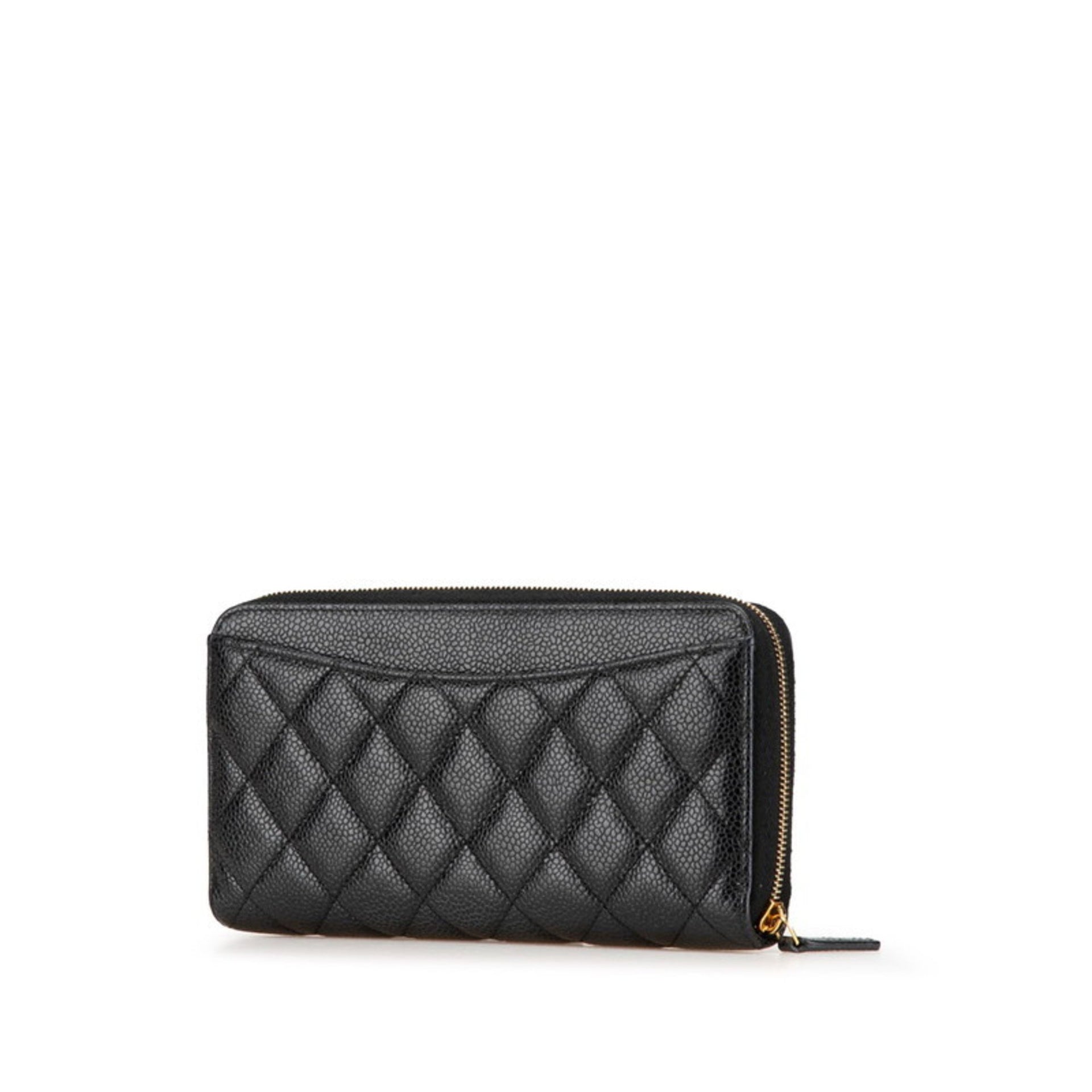 CHANEL Matelasse Coco Mark Round Zipper Long Wallet Black Caviar Skin Women\'s