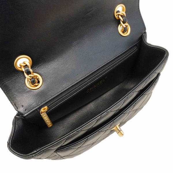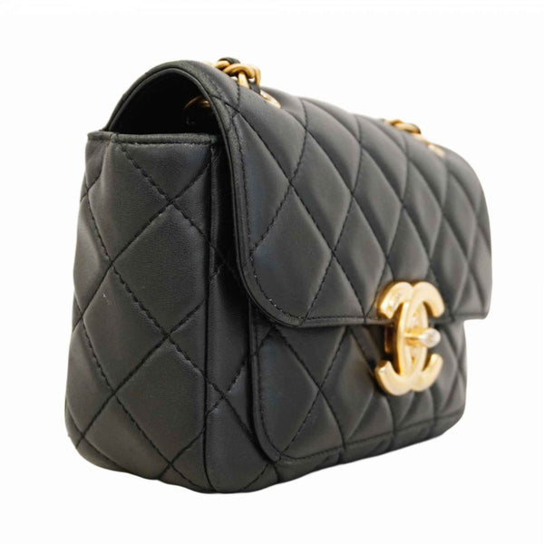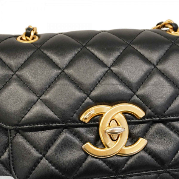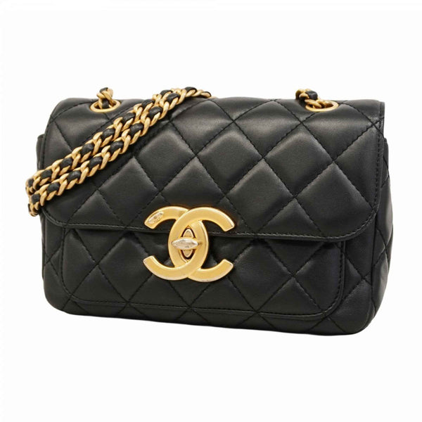 Chanel Matelasse Shoulder Bag with Chain Bag, Lambskin, Black, Women\'s