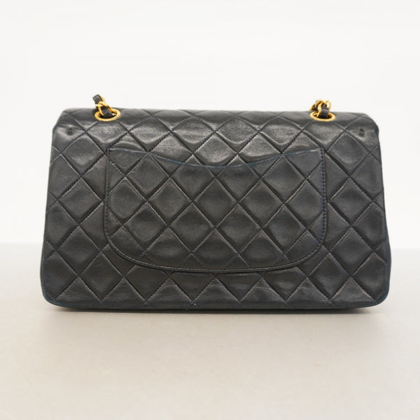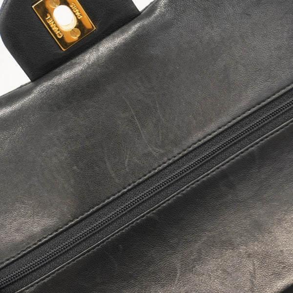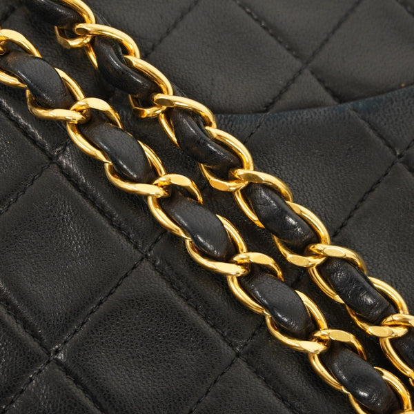Chanel Matelasse Shoulder Bag with Double Flap and Chain, Lambskin, Black, Women\'s