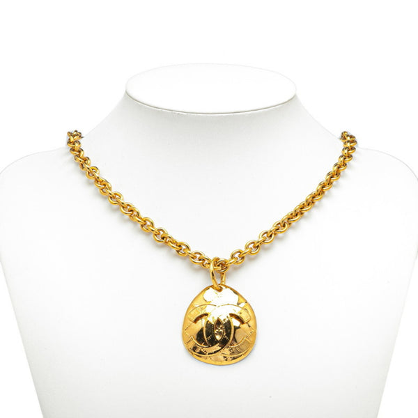CHANEL Matelasse Vintage Coco Mark Chain Pendant Necklace, Gold Plated, Women\'s