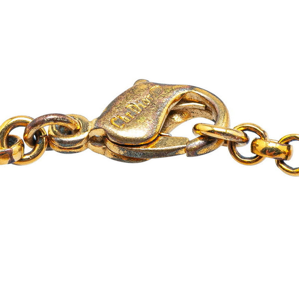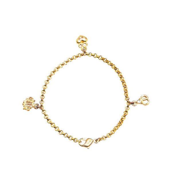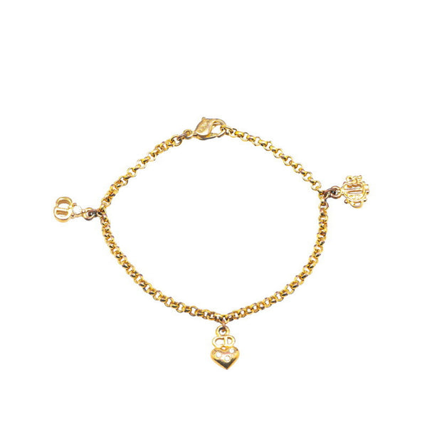 Christian Dior Dior Emblem Logo CD Heart Motif Rhinestone Chain Bracelet Gold Plated Women\'s