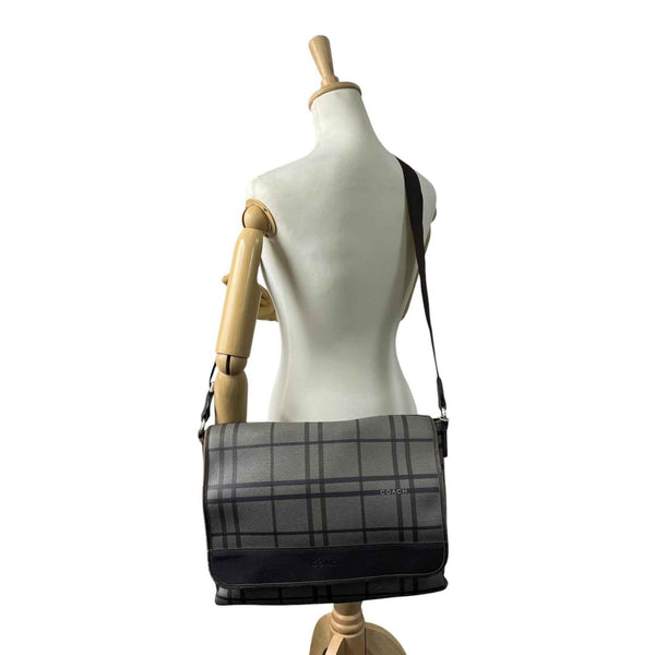 Coach U2 messenger bag/shoulder bag in gray and black with a check pattern