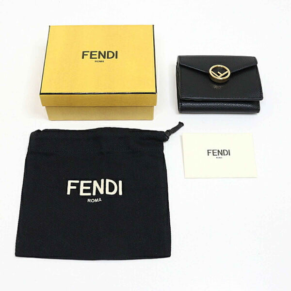 FENDI Trifold Wallet 8M0395 Black Leather Compact Unused