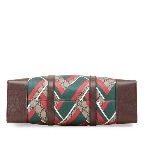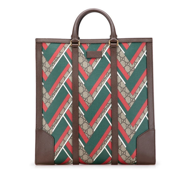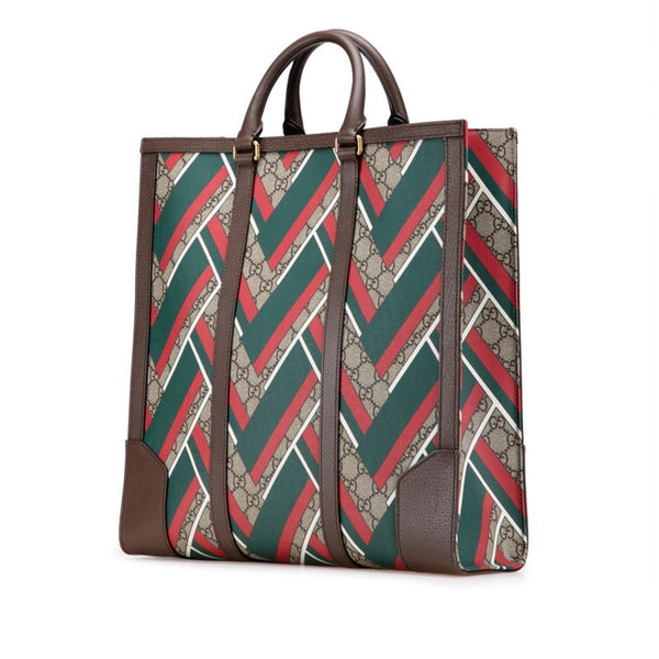 Gucci GG Supreme Chevron Tote Bag 406387 Beige Green Red Leather Women\'s GUCCI