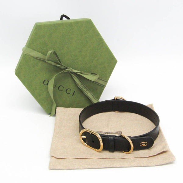 Gucci Interlocking G 695256 Dog Collar Leather Black