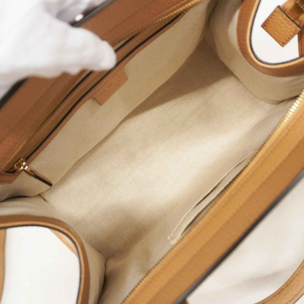 Gucci Interlocking G Handbag 607721 Leather Beige Champagne 2-Way Bag for Women