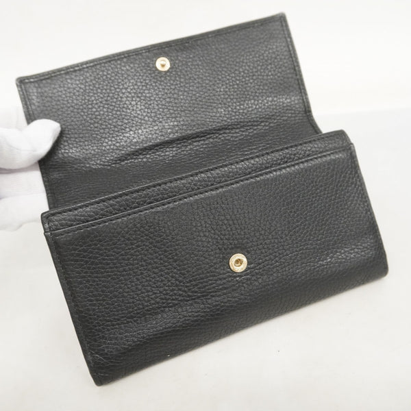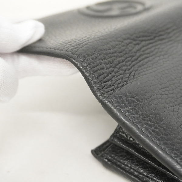 Gucci Interlocking G Long Wallet 598206 Leather Black Champagne Women\'s