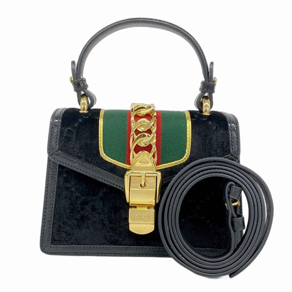 Gucci Sylvie Handbag 470270 Velvet Black 2-Way Bag for Women P1384074