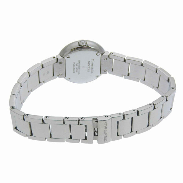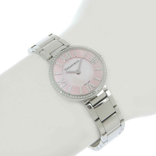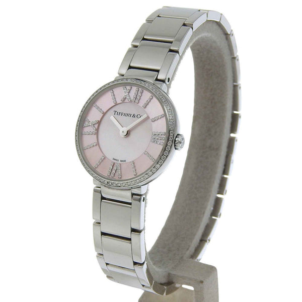 Like new Tiffany & Co. Atlas 6929161, pink shell dial, diamond bezel, indexes, stainless steel