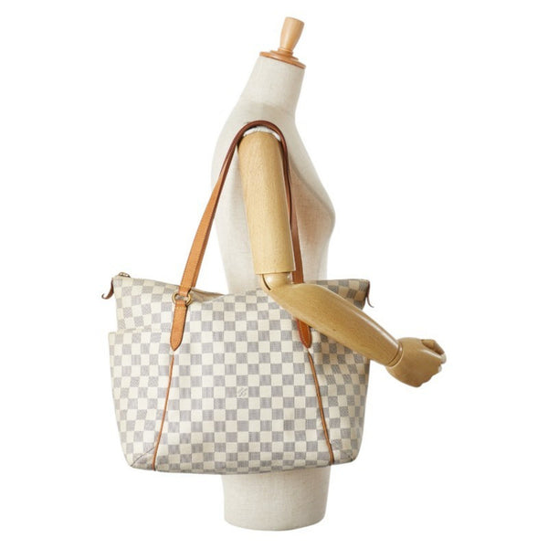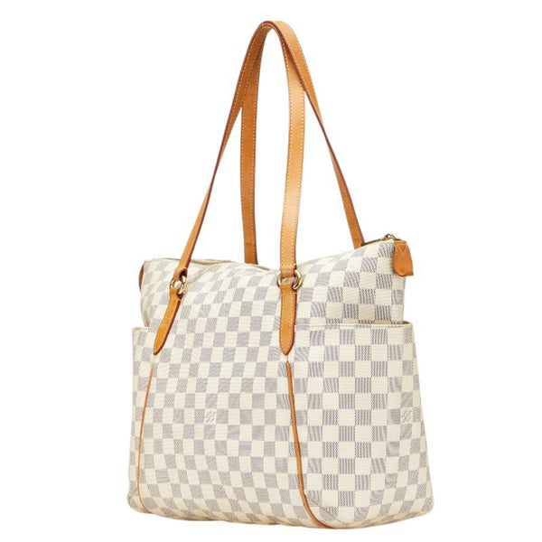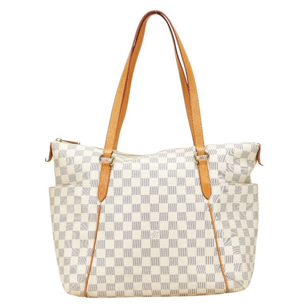 Louis Vuitton Damier Azur Totally MM Tote Bag Shoulder N41279 White Ivory Leather Women\'s LOUIS VUITTON