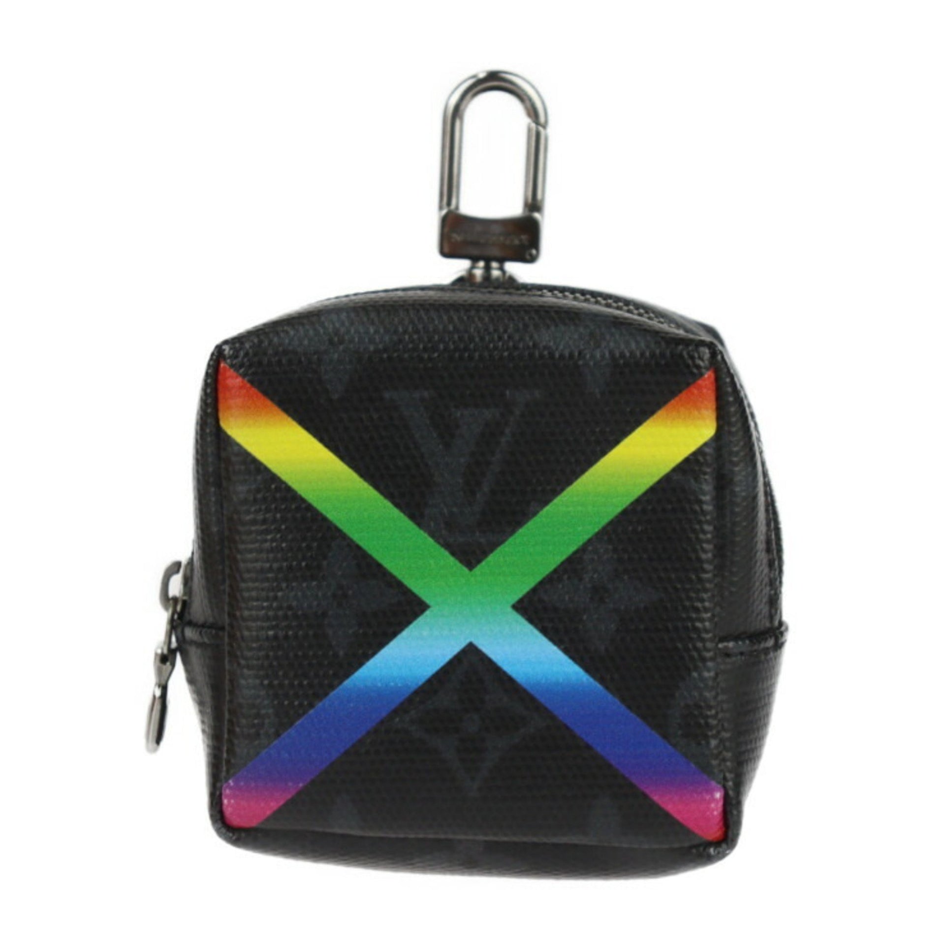 LOUIS VUITTON Louis Vuitton Bijoux Sac Square Pouch Shiny Monogram MP2467 Black Rainbow Color Bag Charm Key Ring