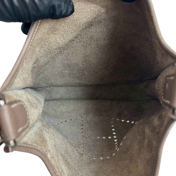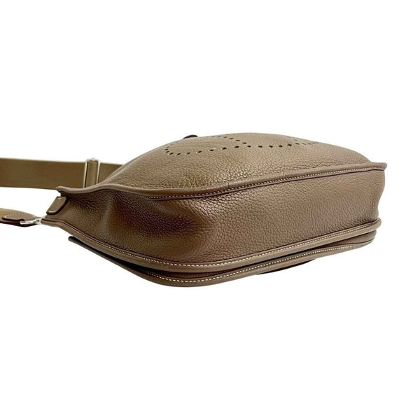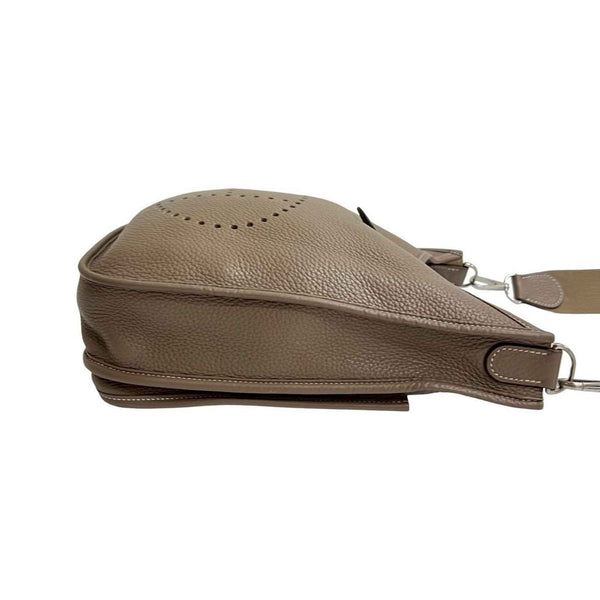□N HERMES Evelyn 3 Taurillon Clemence Leather Shoulder Bag/Pochette/Sacoche/Etoupe 18104