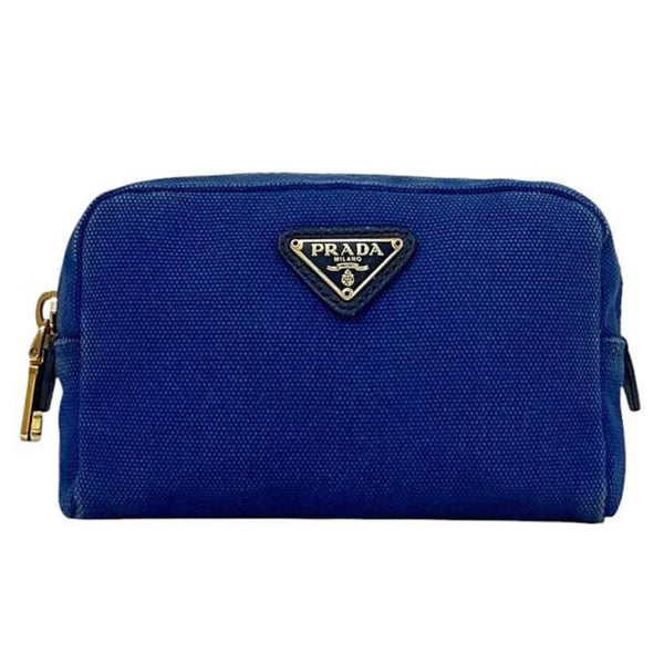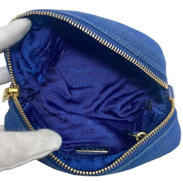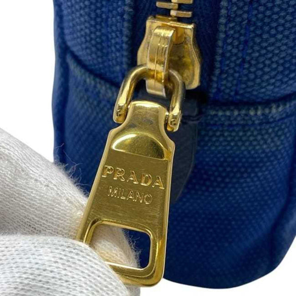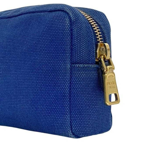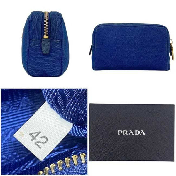 Prada Pouch ec-24112 Blue 1NA021 Canvas Size 42 PRADA Triangle Plate for Men and Women