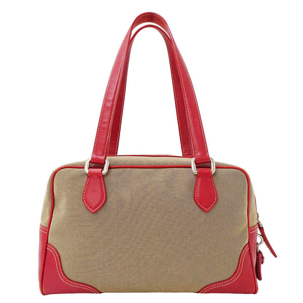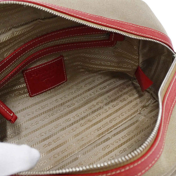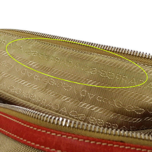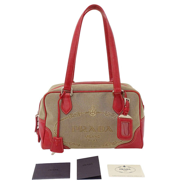 Prada PRADA bag women\'s brand handbag logo jacquard canvas leather beige red