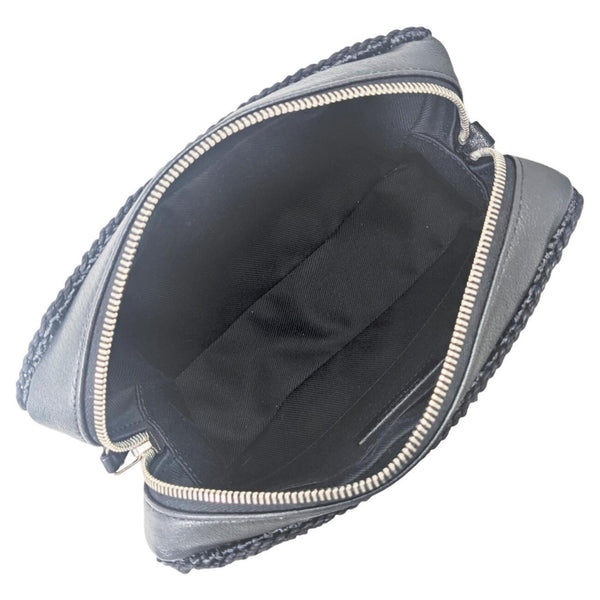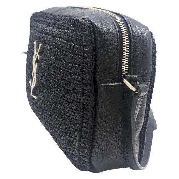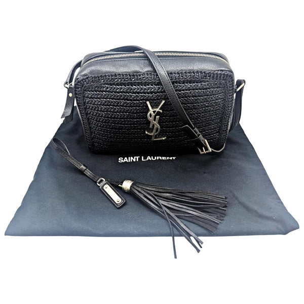 SAINT LAURENT Lou Raffia and Leather Black Camera Bag 468537 Shoulder with Tassel, Black, YSL, Women\'s