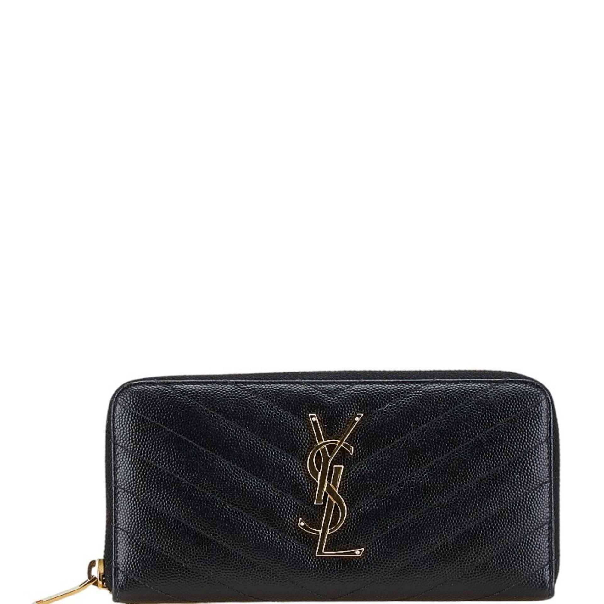 Saint Laurent YSL logo Cassandra long wallet round zipper black leather women\'s SAINT LAURENT