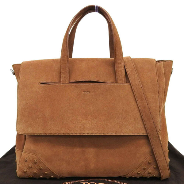 Tod\'s Envelope Bag in buckskin suede with studs light brown.