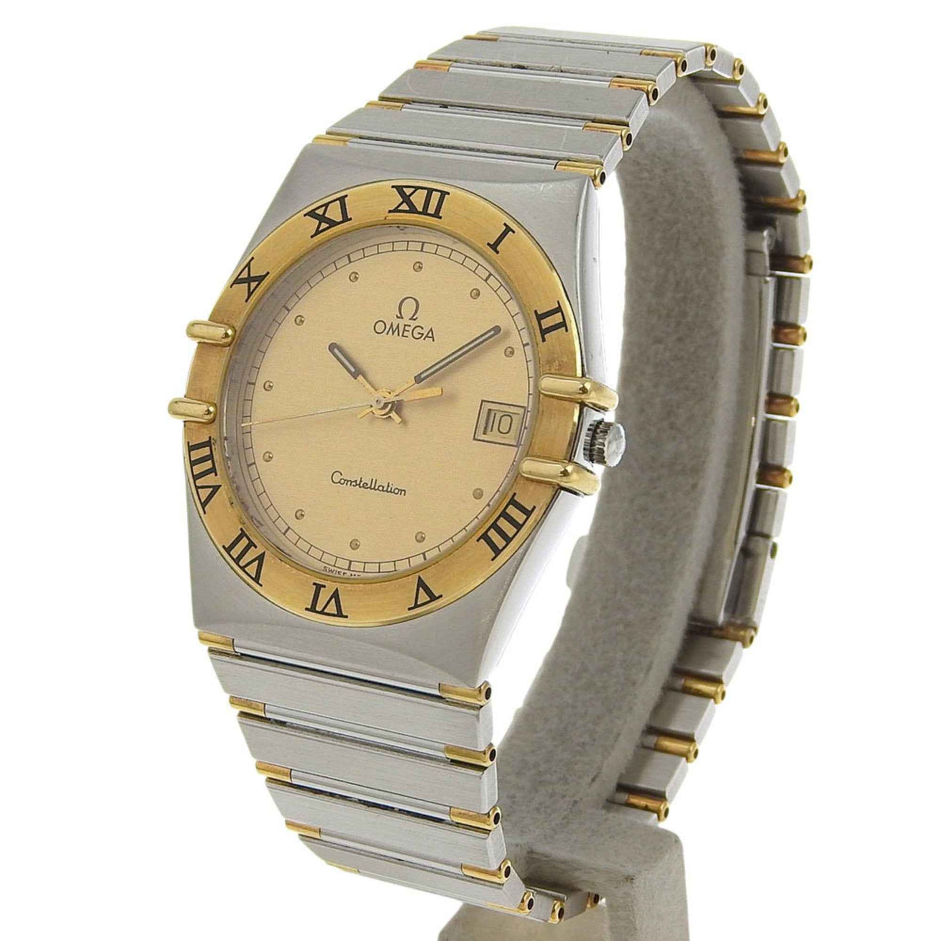 OMEGA Constellation watch, caliber 1441 1448.431, stainless steel with yellow gold, 1989, quartz movement, analog display, gold dial, men\'s.