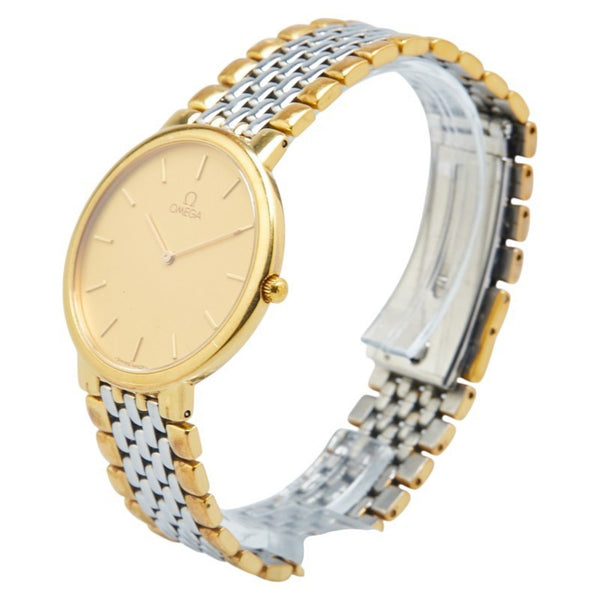 Omega De Ville Quartz Watch with Gold Dial and Stainless Steel Plated for Men