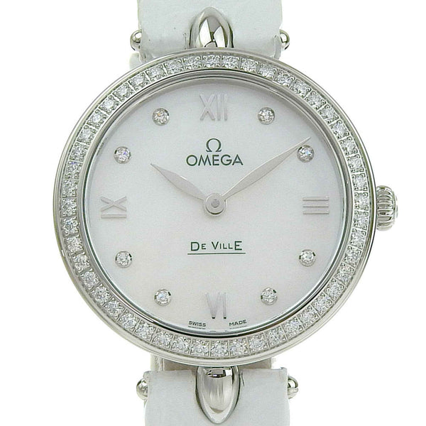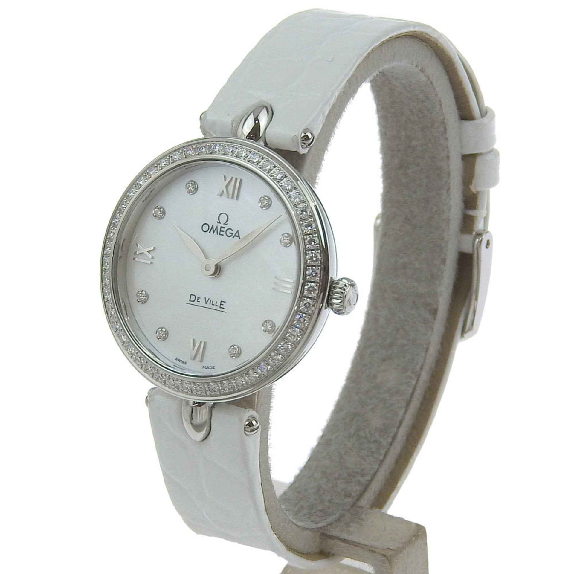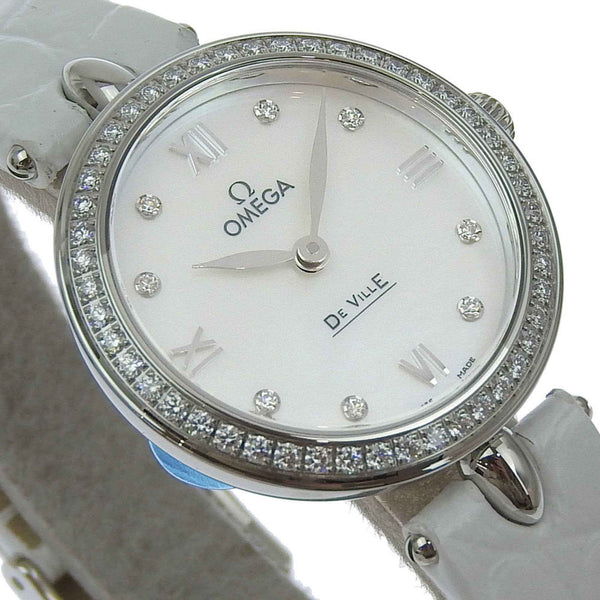 OMEGA Dou Drop Watch De Ville 8P Diamond 424.18.27.60.55.001 Stainless Steel x Embossed Leather Quartz Analog Display White Shell Dial Ladies H112725184