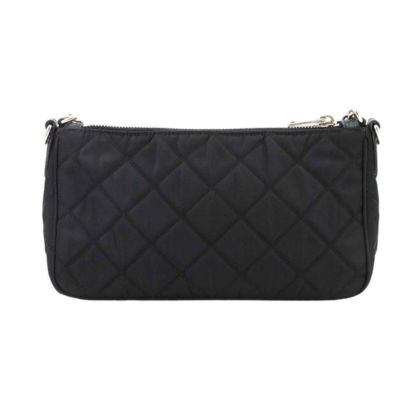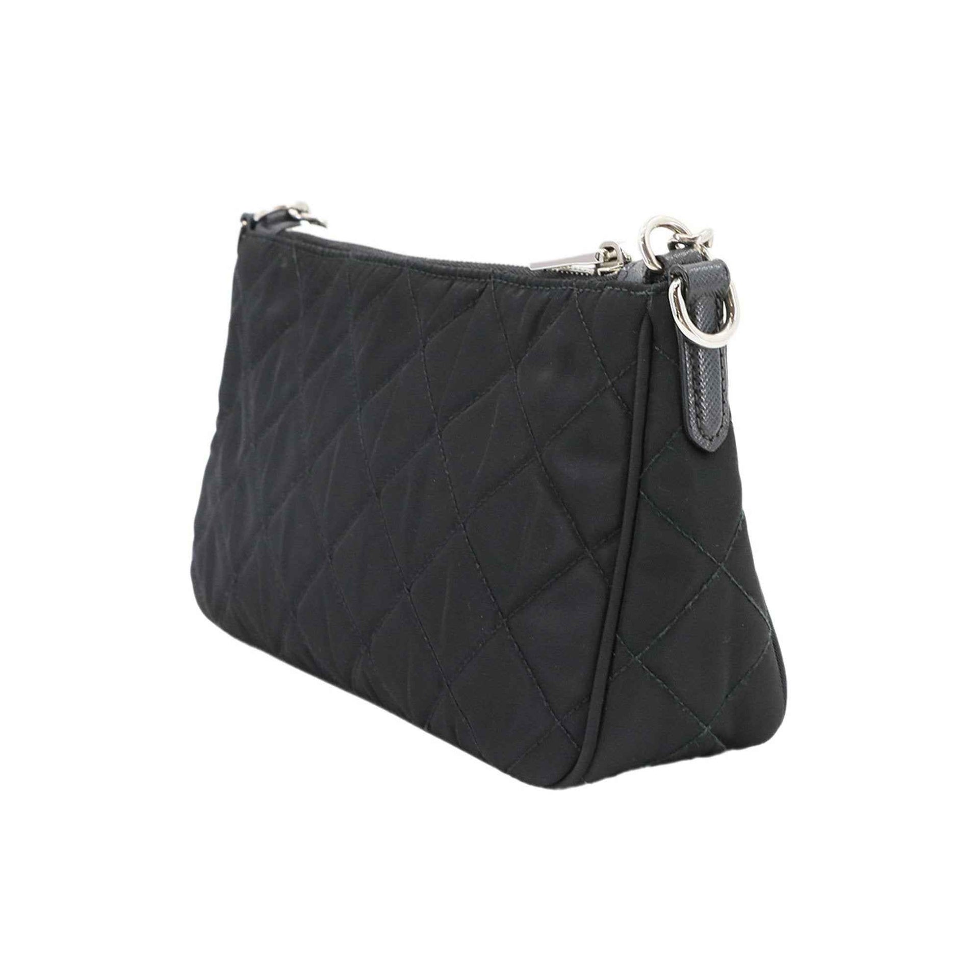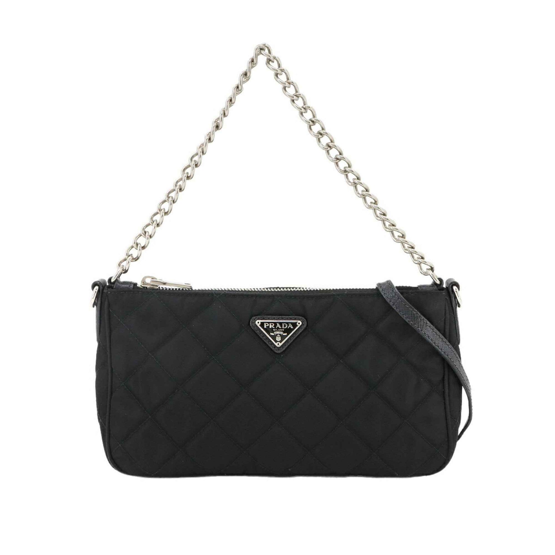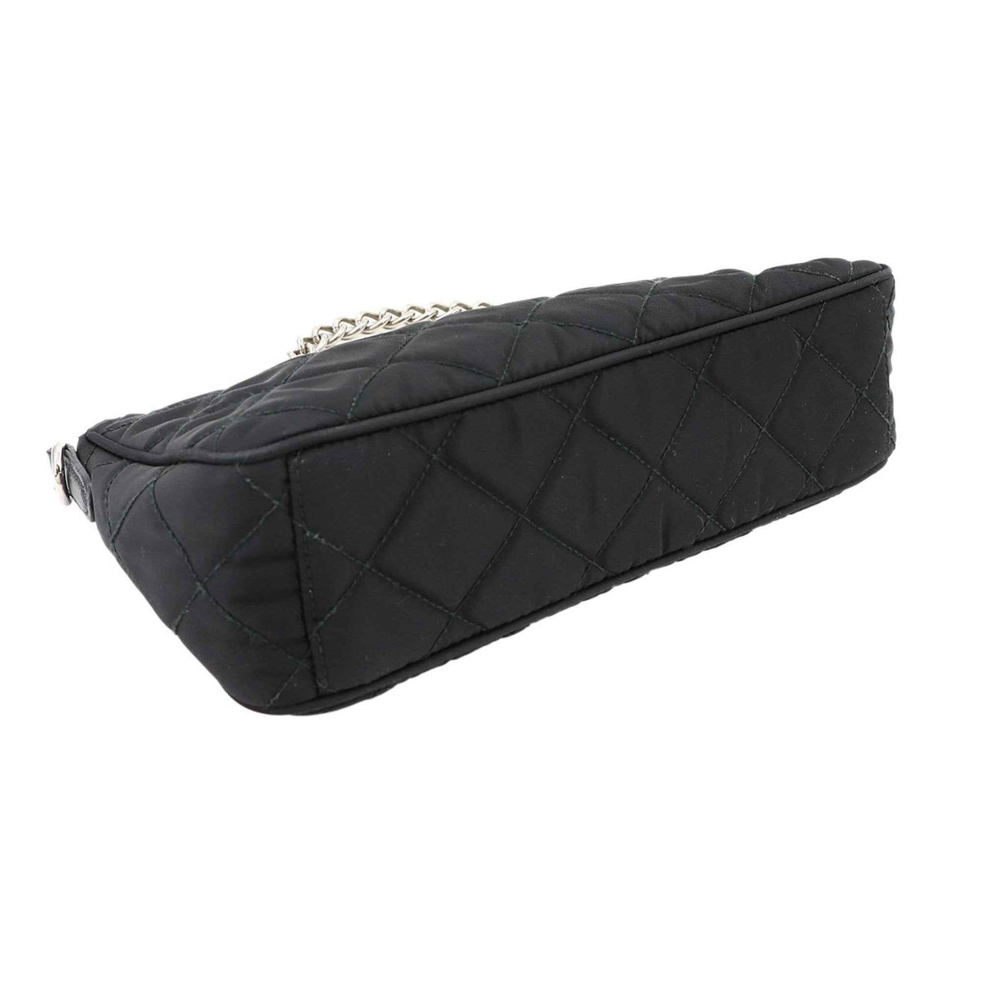 Prada 2-way chain hand/shoulder bag in black nylon with silver hardware (1BH026)