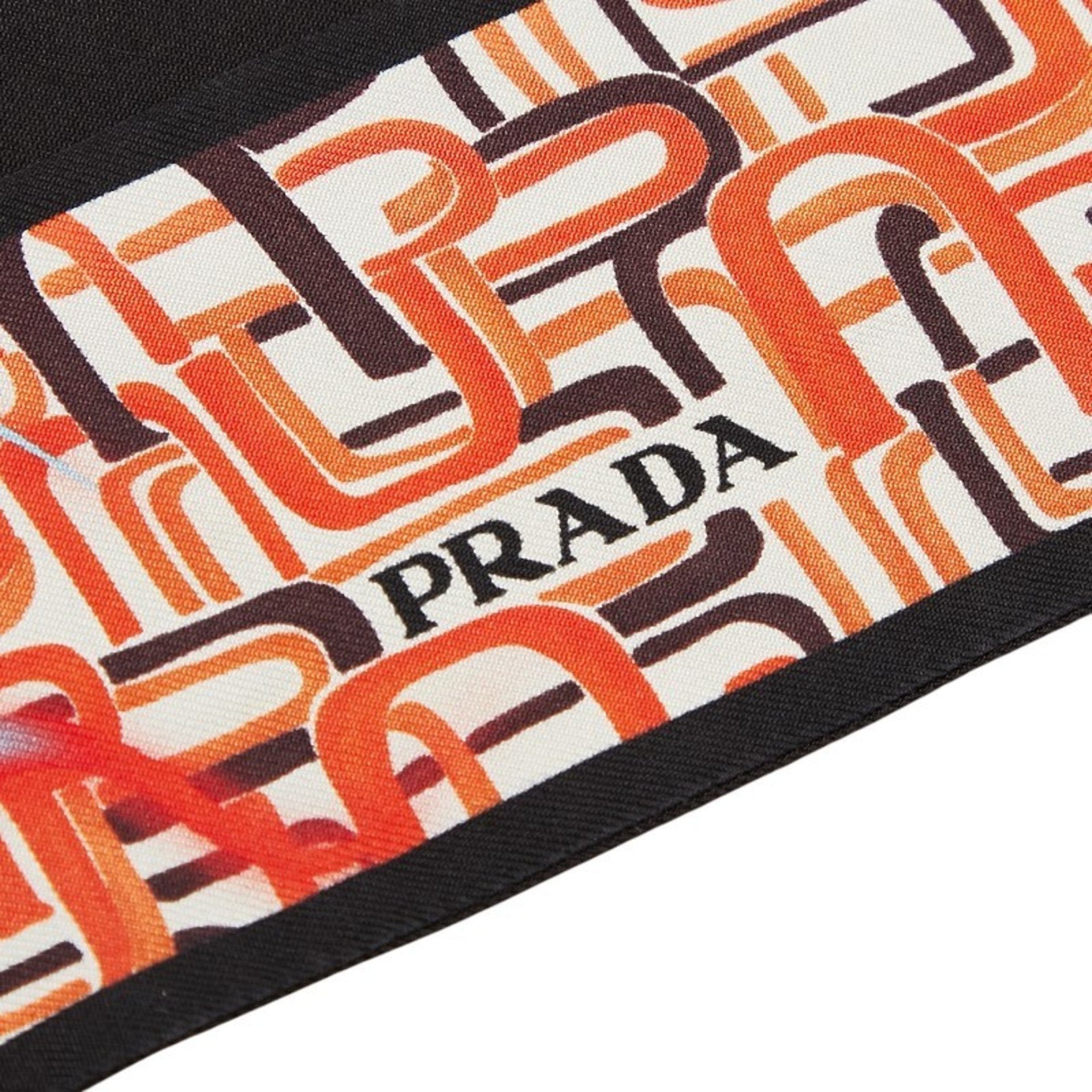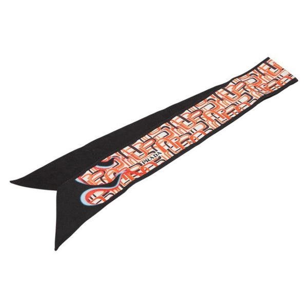 Prada all-over print skinny scarf in black and multicolored silk for women.