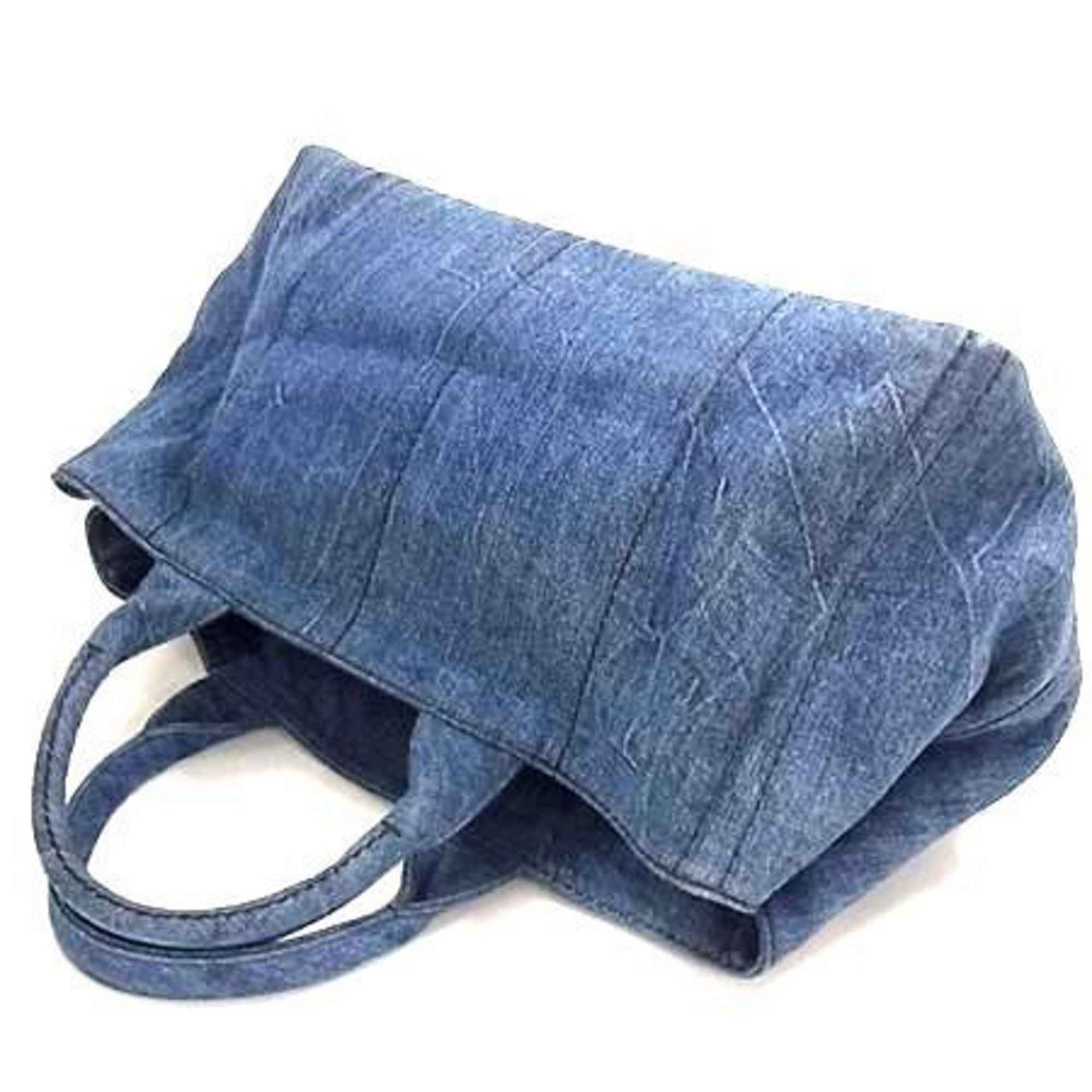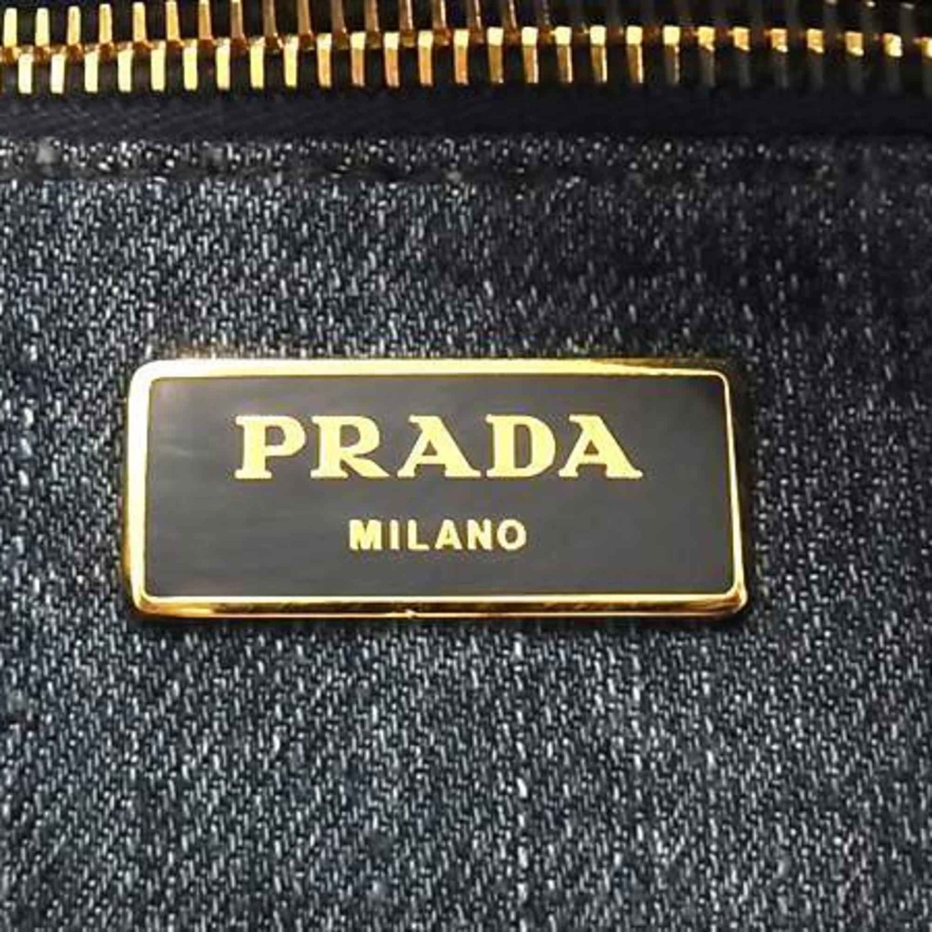 PRADA Canapa B1872B Navy Denim Handbag with White Tag and Triangle Mark