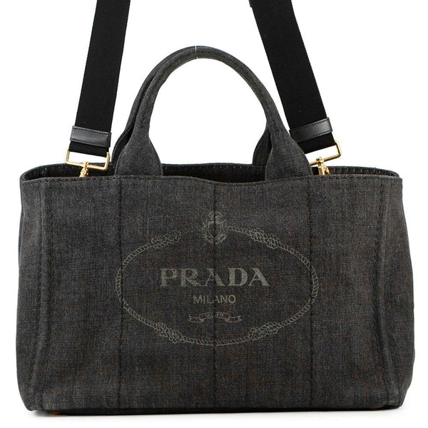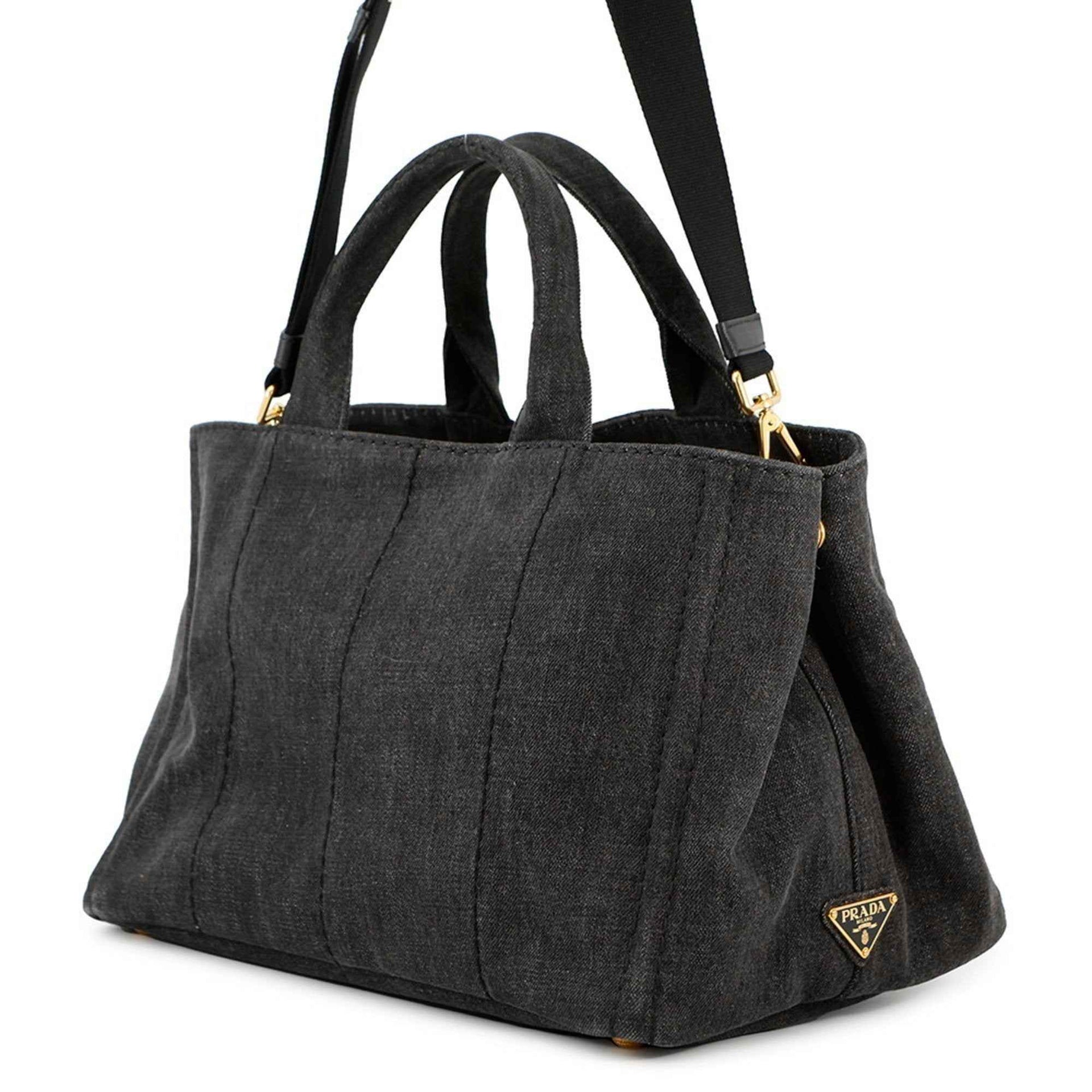 Prada Canapa Denim Tote Bag B2642B PRADA 2-Way Black