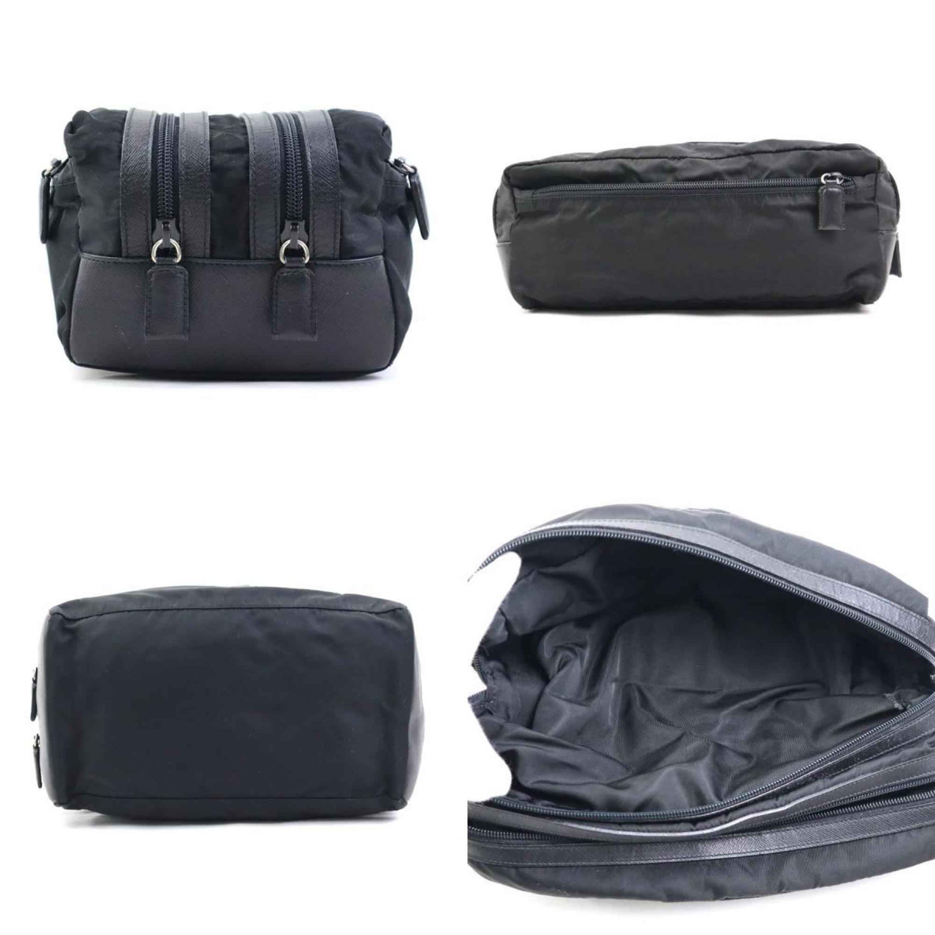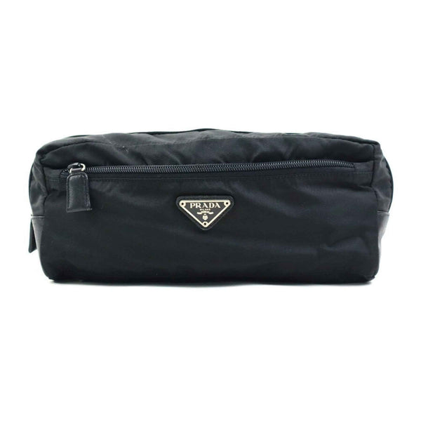 Prada clutch bag pouch in nylon and leather black for men women, r10861a