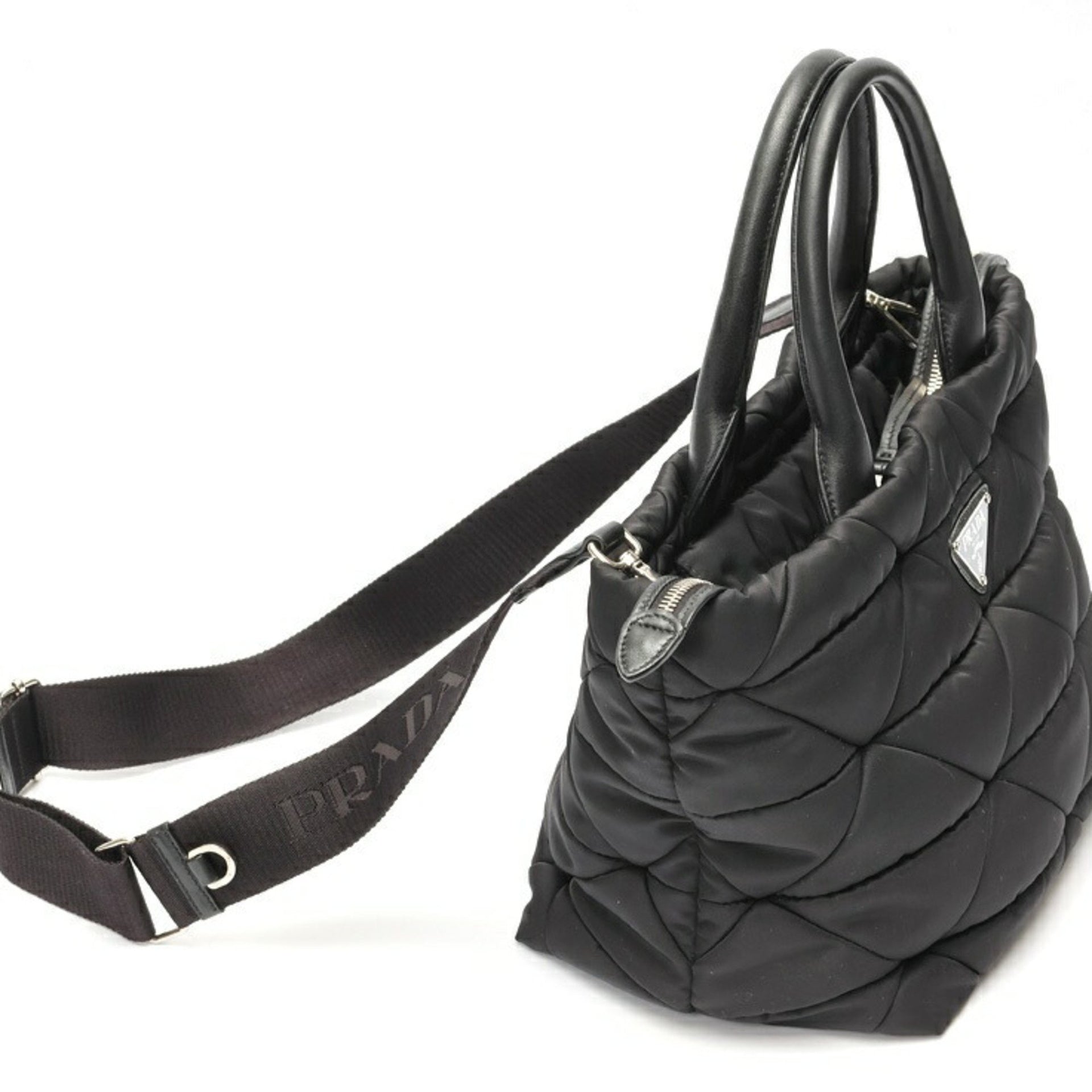 PRADA Medium Padded Re-Nylon x Leather Tote Bag 1BG436 Nylon Black S-158775