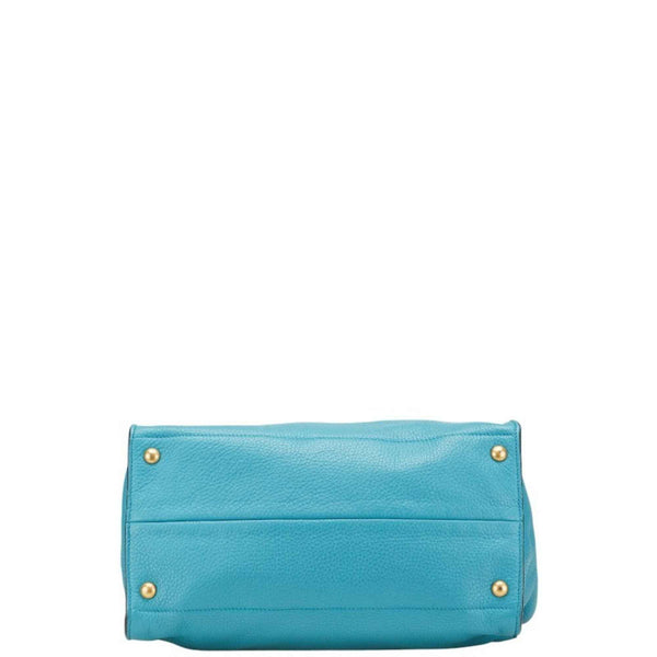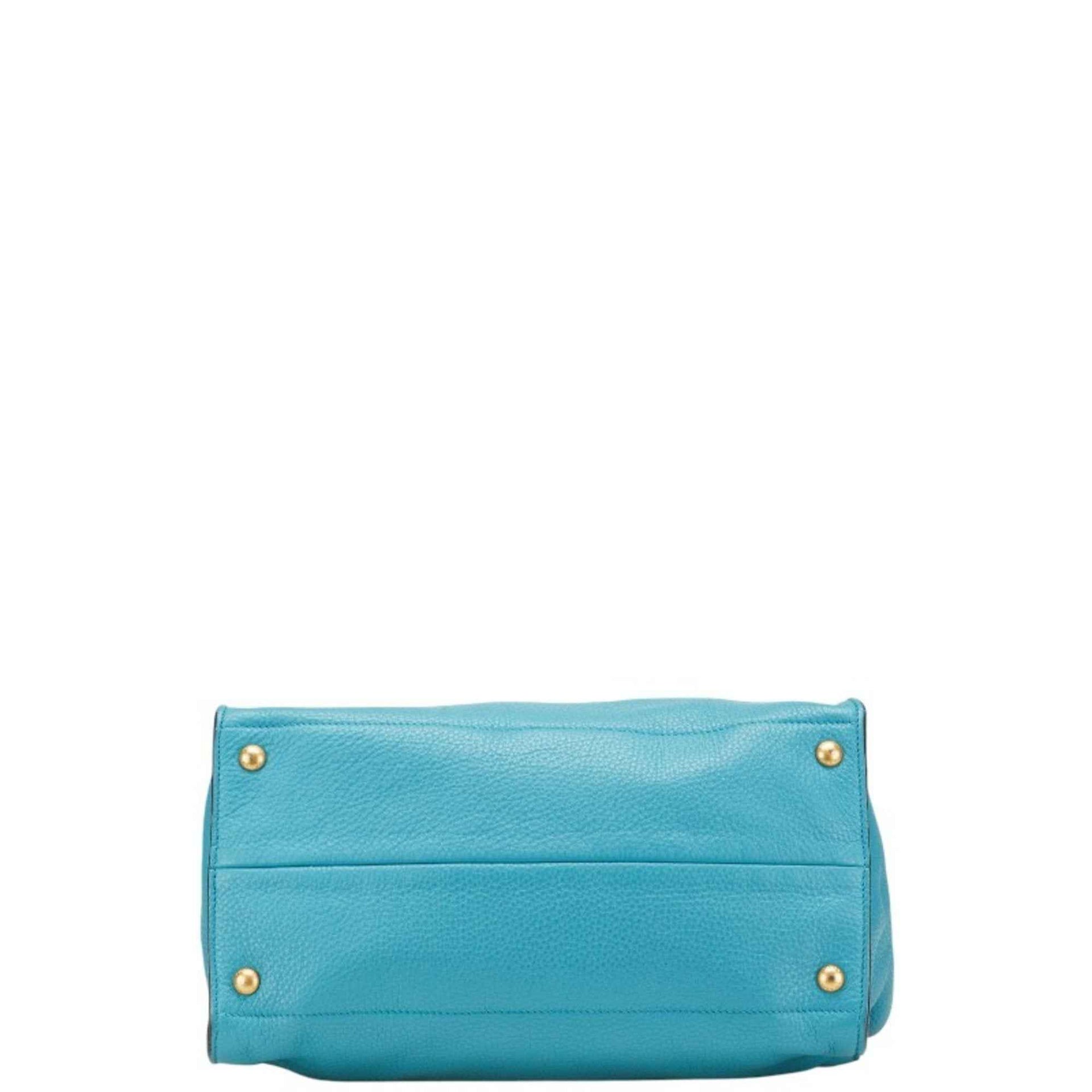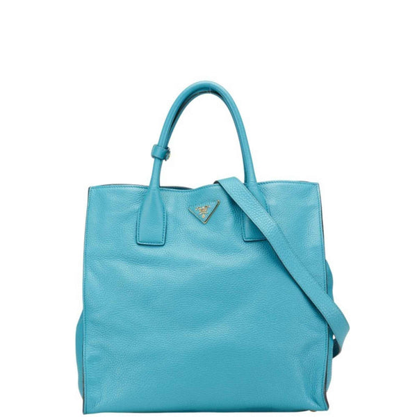 Prada Triangle Logo Plate Handbag/Shoulder Bag, 2-Way, Light Blue Leather, Women\'s, PRADA