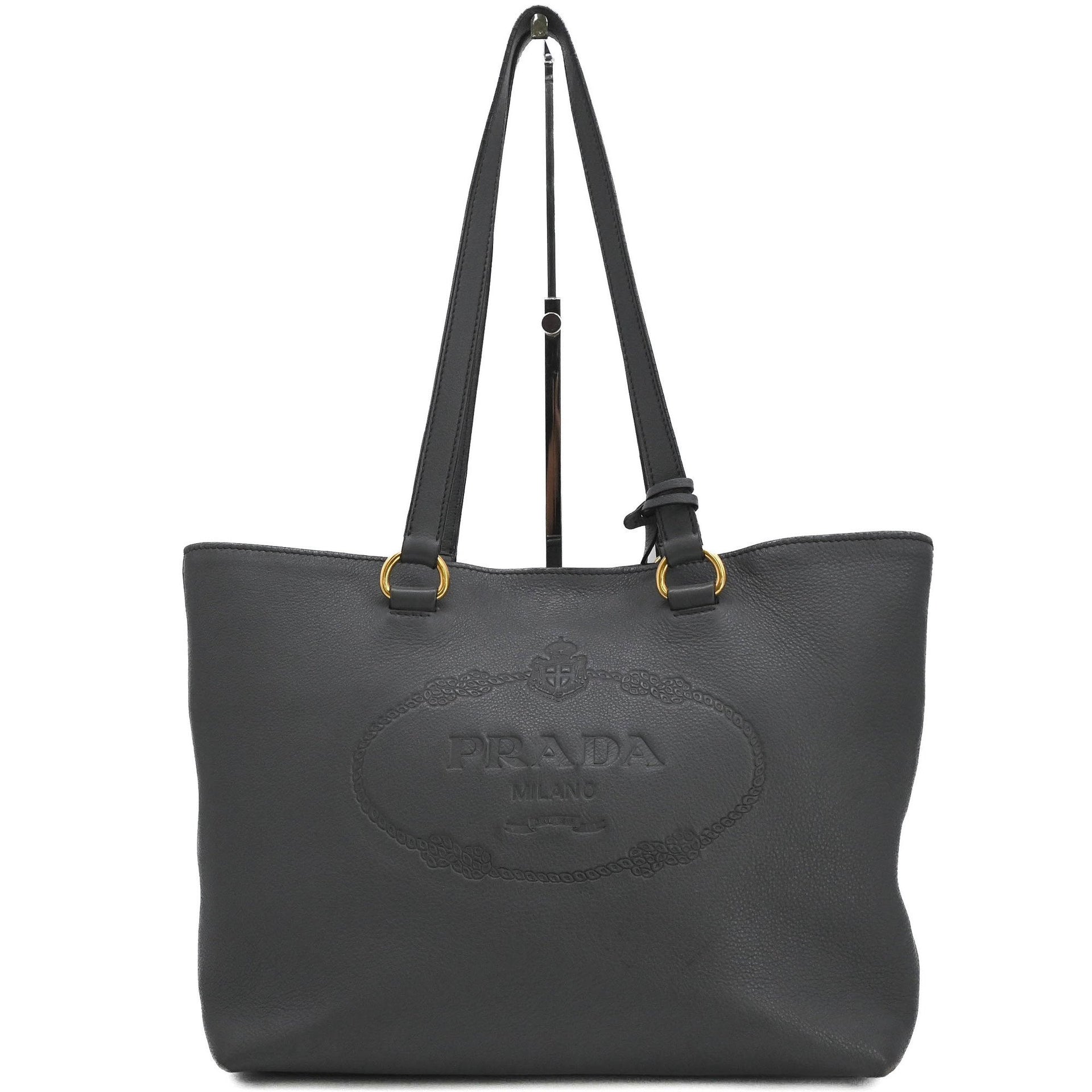 Prada Vitello Phoenix Tote Bag Shoulder Gray Women\'s and Men\'s