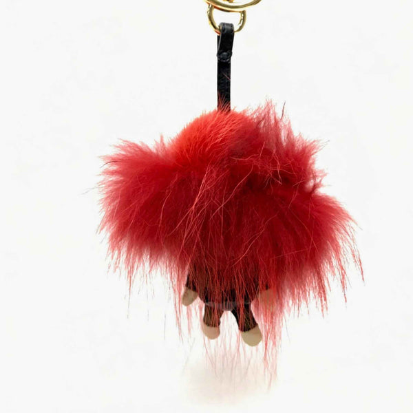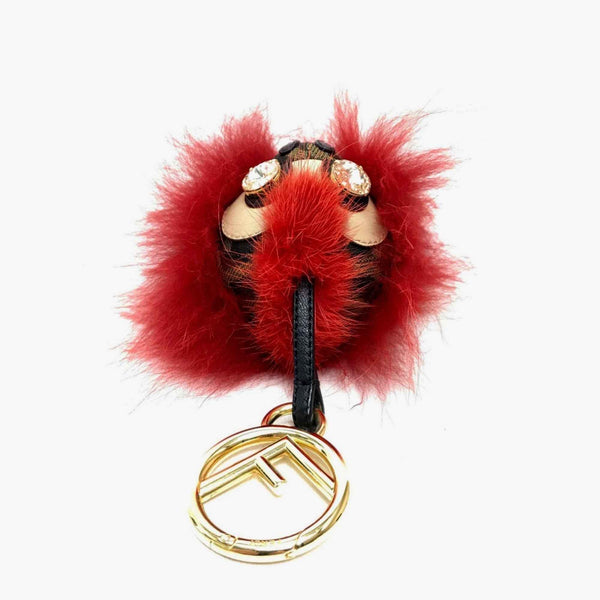 Fendi Real fur FF pattern with Bijoux Key ring Red Red x Brown GoldHardware