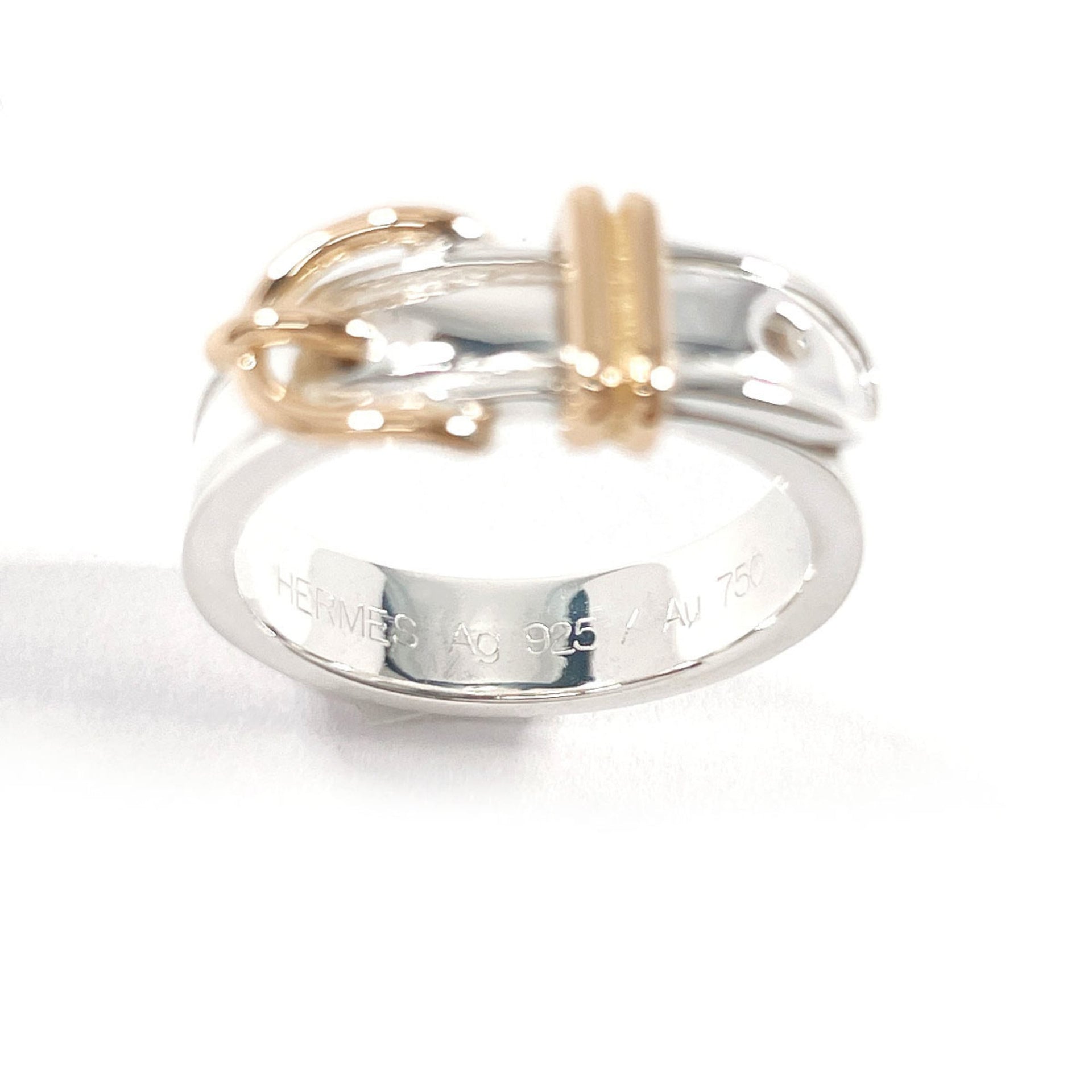 HERMES Hermès Santur Ring, 925 Sterling Silver/18K Yellow Gold, 9 Silver, Women\'s, K5088777