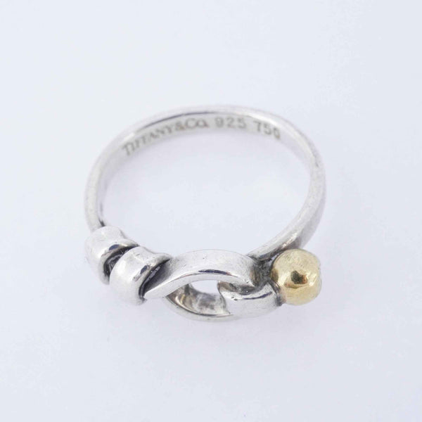 Tiffany Hook & Eye Ring in 18K Yellow Gold and 925 Sterling Silver, Size 4.5, Women\'s