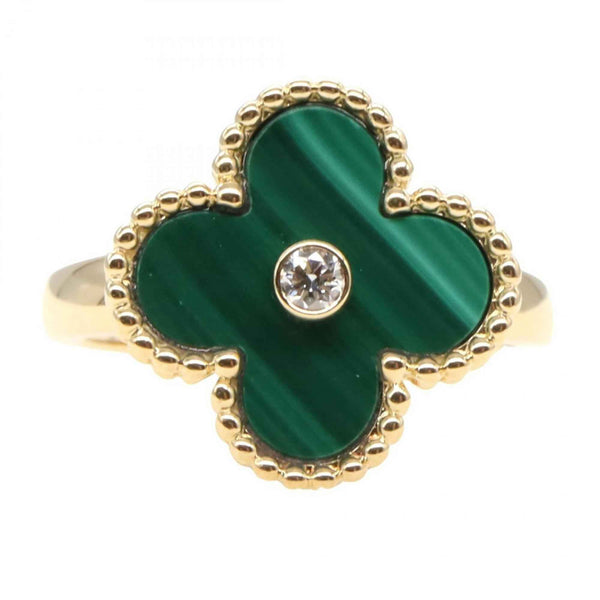 Van Cleef & Arpels Vintage Alhambra Malachite Ring (1PD) in 18K Yellow Gold with Diamonds and Malachite. Available Gold, Green, Clear.