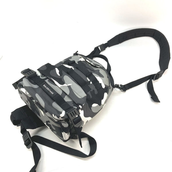 BALENCIAGA 6440312 Camouflage Army Backpack/Shoulder Bag, 2-Way Canvas Rucksack, Men\'s, Gray/Black