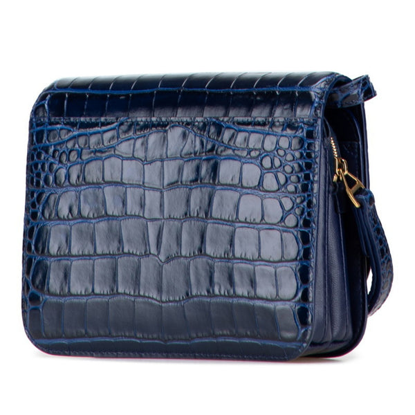 Balenciaga B Logo Crocodile Embossed Shoulder Bag 592898 Navy Leather Women\'s BALENCIAGA