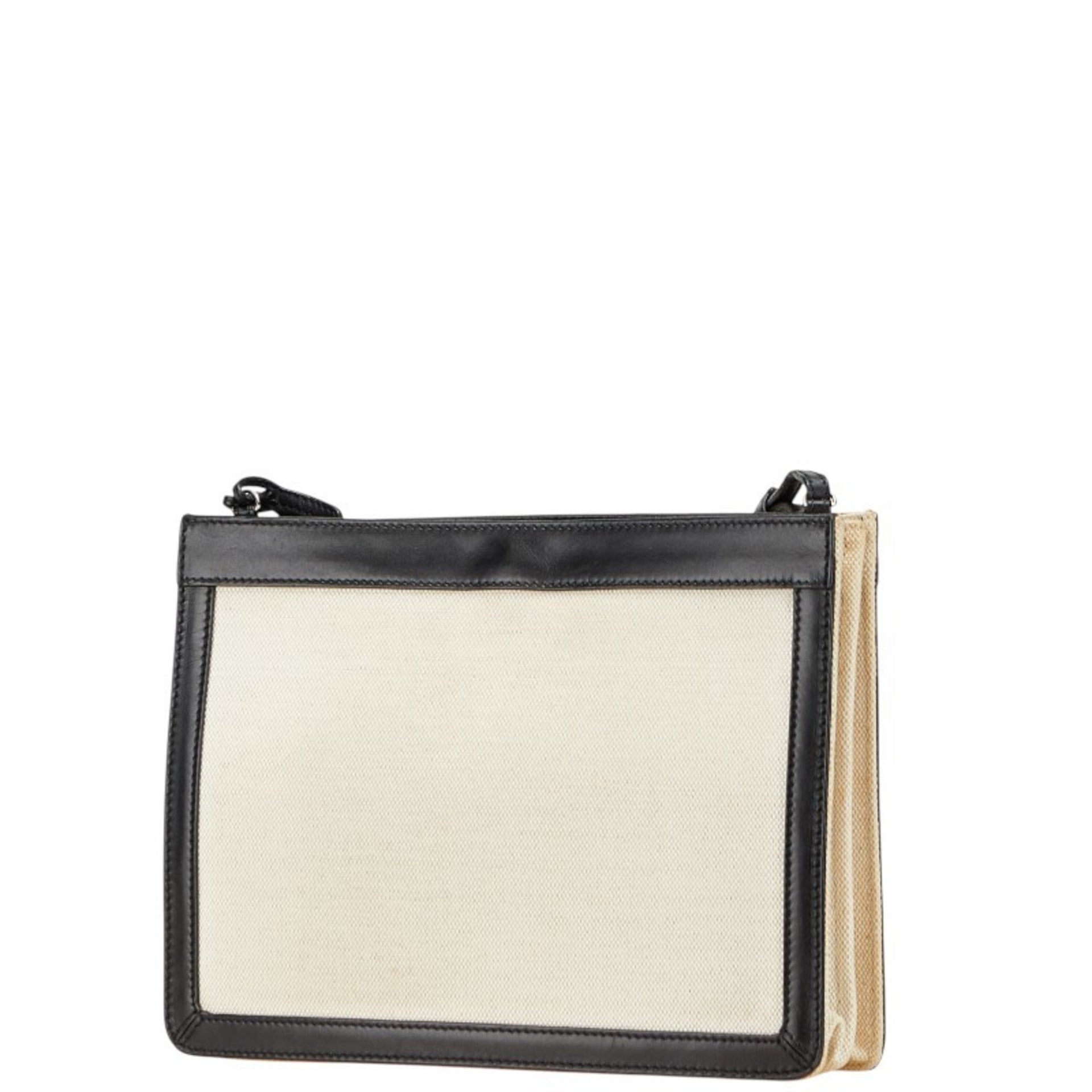Balenciaga Navy Pochette Shoulder Bag 339937 Beige Black Canvas Leather Women\'s BALENCIAGA