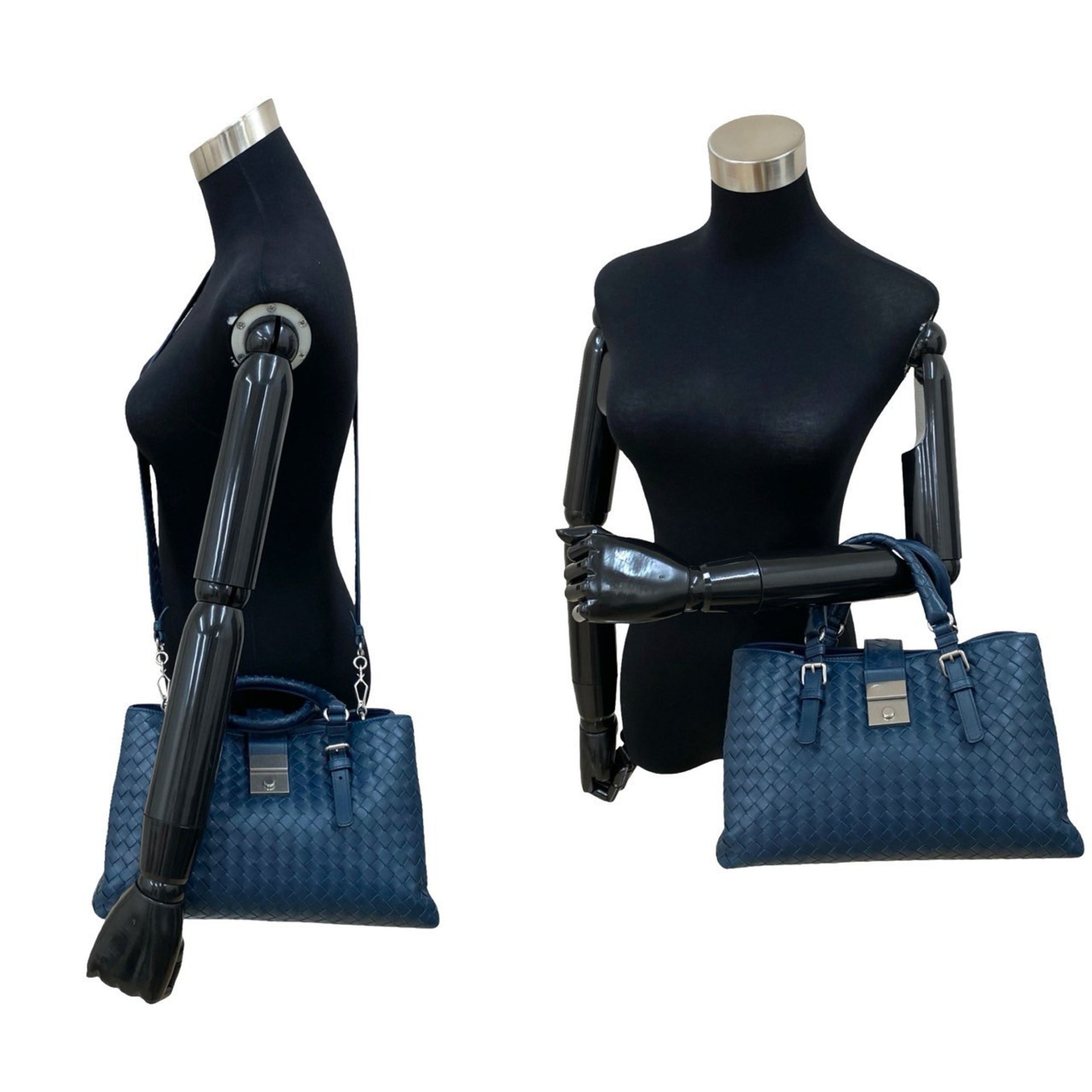 BOTTEGA VENETA Intrecciato Leather 2-Way Handbag/Shoulder Bag, Navy Blue, 919-1