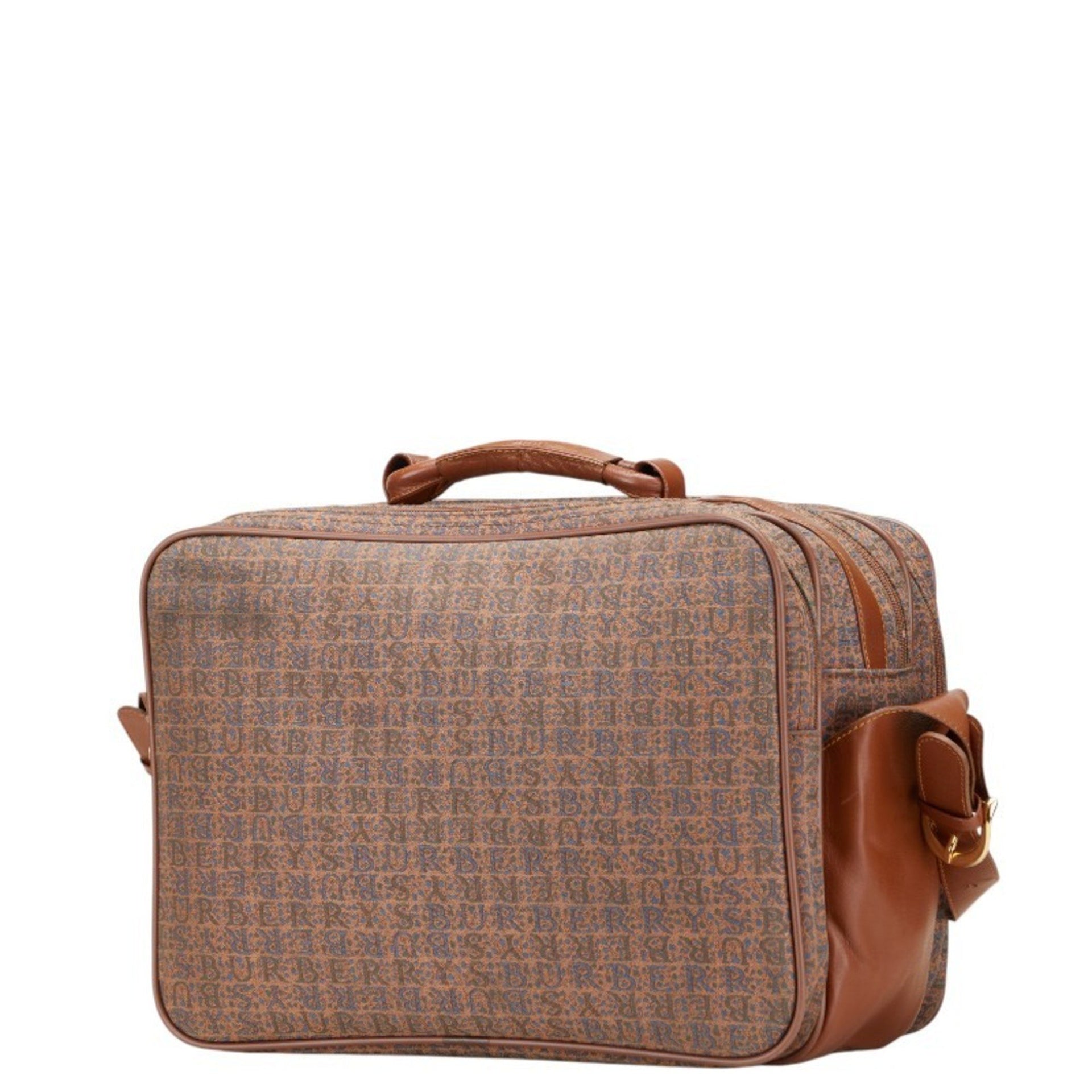 Burberry logo handbag/shoulder bag in brown and blue canvas leather for women.