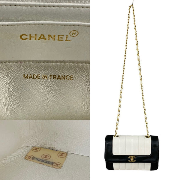 Card No. 2 CHANEL Coco Mark Lambskin Chain Shoulder Bag in White and Black 23859