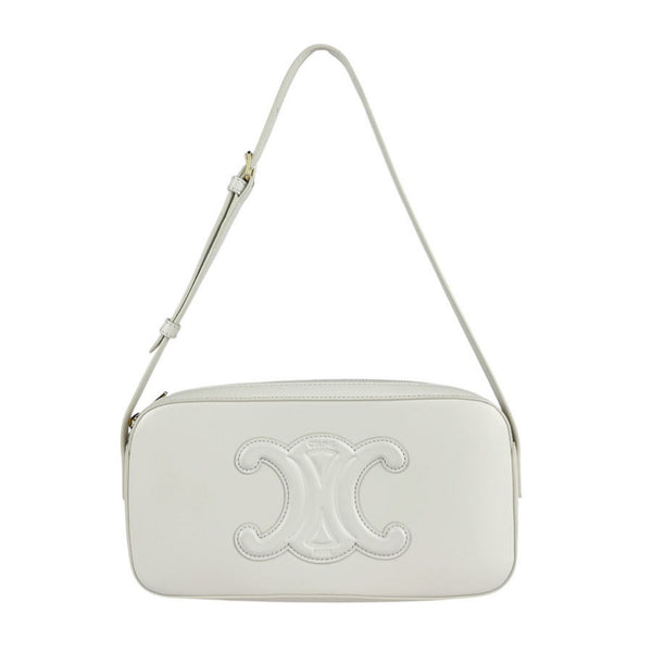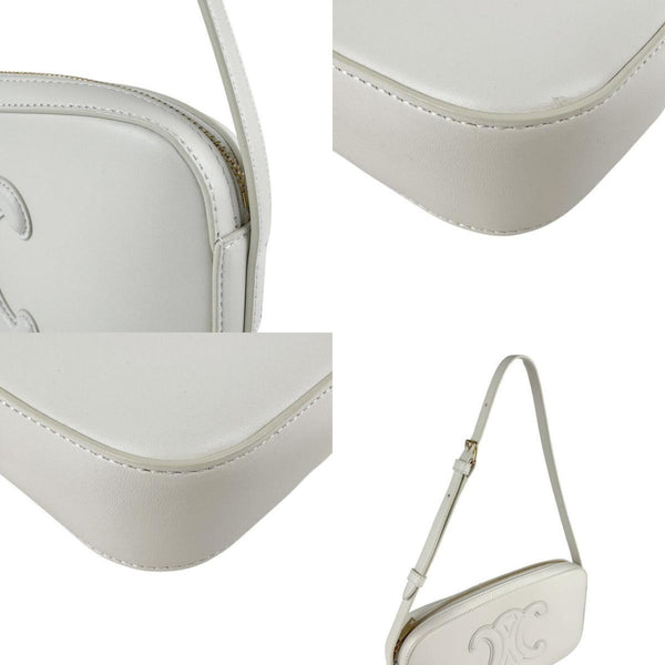 Celine Camera Shoulder Bag, Leather, White and Gold, Women\'s, Z6846