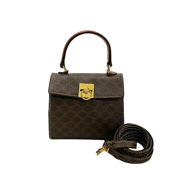 CELINE Macadam Blason Ring Hardware Leather 2-Way Mini Handbag/Shoulder Bag Brown 191-3